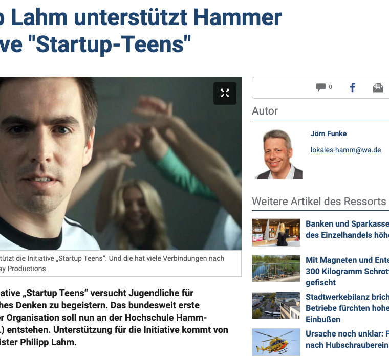 Philipp Lahm unterstützt Hammer Initiative „Startup-Teens“