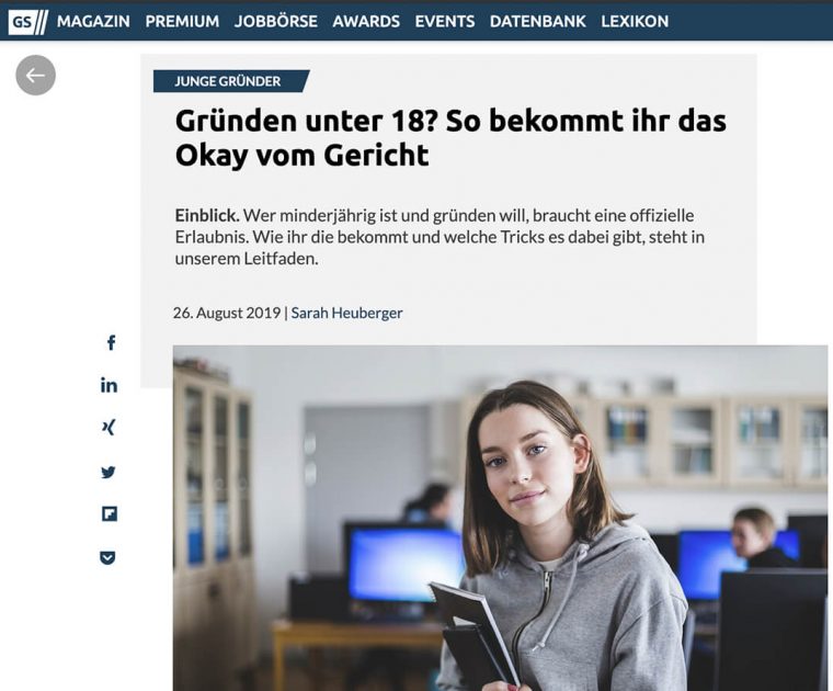 Schon Minderjährige können in Deutschland eigene Firmen gründen. Allerdings brauchen die Jungunternehmer dafür die Zustimmung ihrer Eltern. Wichtig sind auch Eigeninitiative, Durchhaltevermögen und ein gutes Netzwerk aus Unterstützern.
