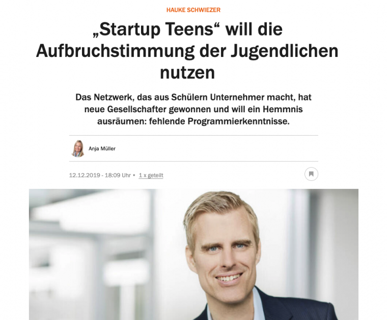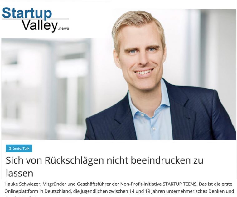 Hauke Schwiezer Mitgründer STARTUP TEENS im Interview unter anderem zum Thema unternehmerische Bildung. „Routine ist der Feind von Innovation. Indem wir jungen Menschen mit einer unverbauten Sicht auf die Dinge eine Stimme geben, befähigen wir uns als Unternehmen, innovativ zu bleiben und damit wettbewerbsfähig.“