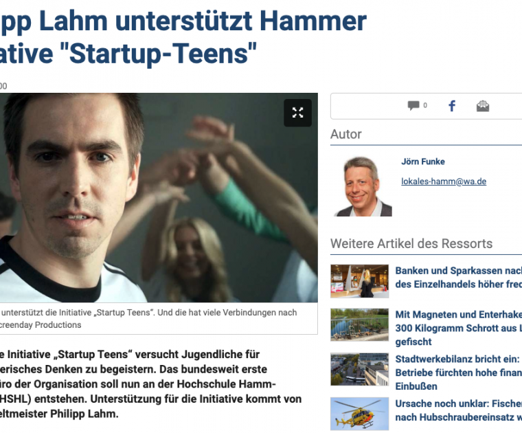 Philipp Lahm unterstützt Hammer Initiative „Startup-Teens“