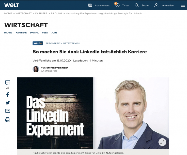 Die Plattform LinkedIn bietet umfangreiche Möglichkeiten zur Pflege bestehender Geschäftskontakte und zum Knüpfen neuer Verbindungen. Sie ist ein Karrierenetzwerk, in dem sich vom Blender bis zum hochkarätigen Firmenmanager alle tummeln. Aus seinen Erfahrungen hat Schwiezer acht Tipps für User herausgearbeitet, mit denen auch Ihnen der Erfolg im Karrierenetzwerk sicher ist.