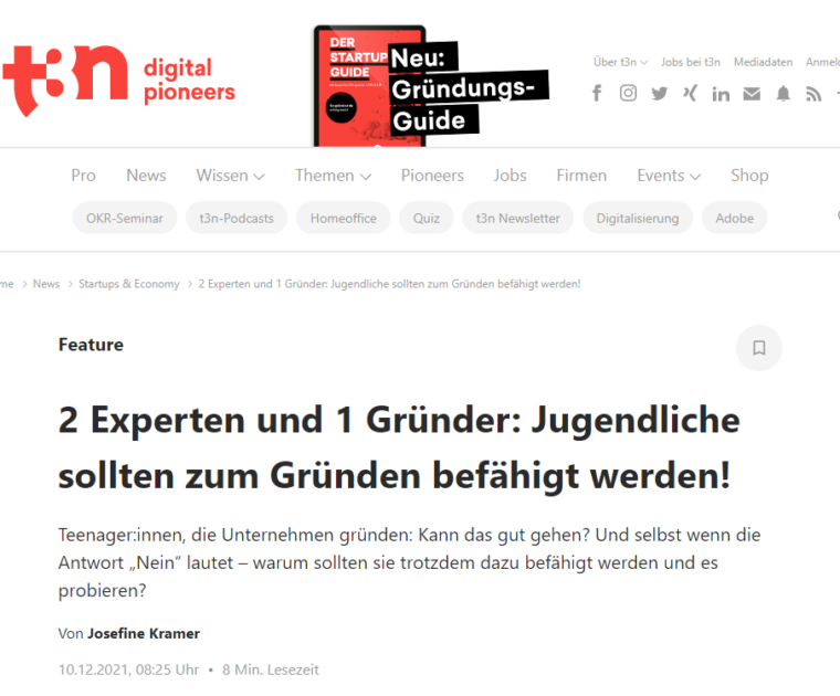 17 Jahre, eine tolle Geschäftsidee, aber keine Ahnung wie man ein Unternehmen gründet? Das will die Plattform Startup Teens ändern – hier können Jugendliche per Youtube-Videos lernen, was zur Geschäftsgründung dazu gehört. Das langfristige Ziel: Unternehmensgründungen in Deutschland fördern.