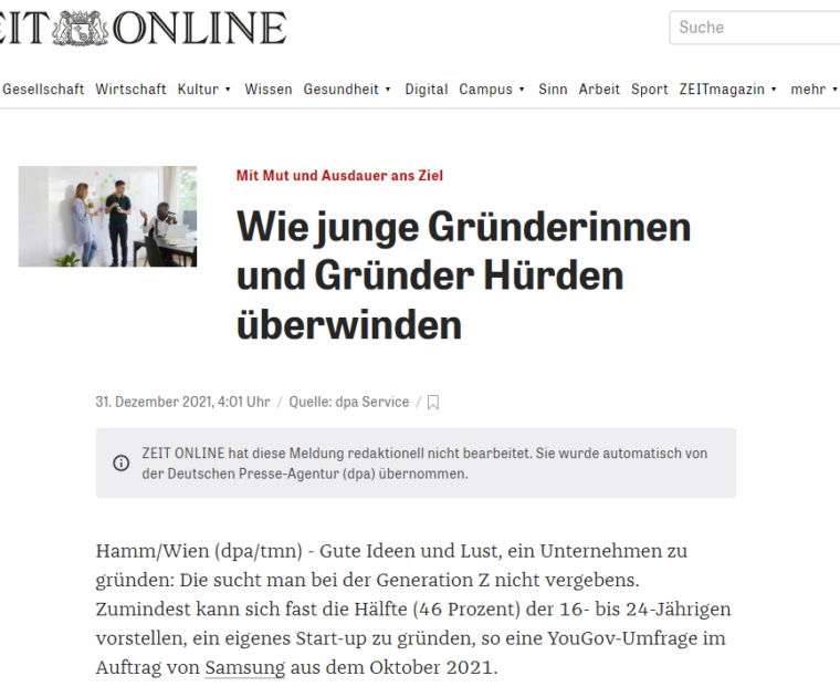 Gute Ideen und Lust, ein Unternehmen zu gründen: Die sucht man bei der Generation Z nicht vergebens. Zumindest kann sich fast die Hälfte (46 Prozent) der 16- bis 24-Jährigen vorstellen, ein eigenes Start-up zu gründen, so eine YouGov-Umfrage im Auftrag von Samsung aus dem Oktober 2021.